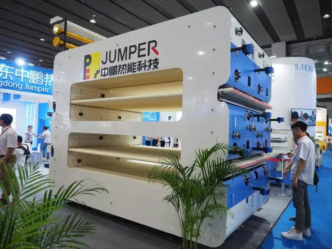 中鹏热能“高铁窑”:中鹏热能高铁时代型辊道窑(KOHSTA)拥有高精度传动、3Hi节能技术、窑炉废热综合利用系统、窑炉数据管理系统、“大屏展示系统”、辊棒检测打码机、辊棒涂布机等行业领先技术;同时中鹏热能还针对岩板普遍存在的切割裂问题拿出了解决方案——快速冷却会造成岩板产品应力无法释放而导致切割开裂,通过优化烧成制度做到均匀冷却,为岩板完美加工通过重要保障。