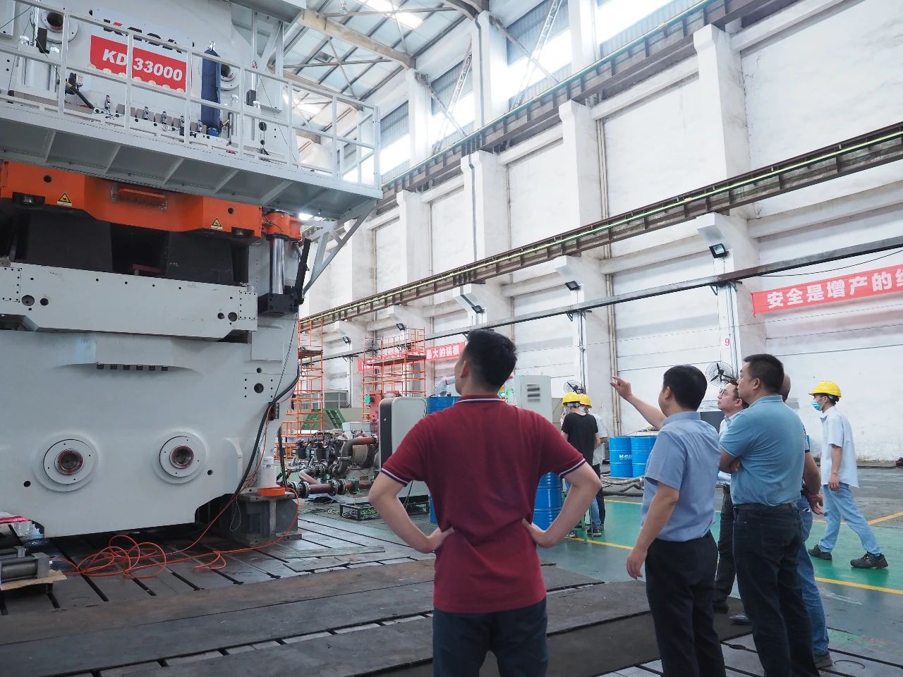 2019年初,广东新一派建材有限公司斥资3亿元投入岩板生产线建设。在岩板生产设备的选用上,新一派似乎只“钟情”于恒力泰的压机。2020年6月12日,恒力泰YP16890压机在新一派成功投产。截至目前,新一派共有3条岩板生产线分别采用了恒力泰的YP8890、YP16800、YP16890压机,其最近投产的这台YP16890压机的最大压制力为168000kN,目前主要压制的产品规格有1200×2400㎜、1200×2700㎜、800×2600㎜。