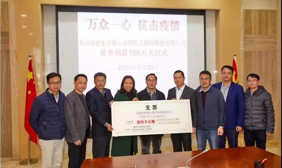 在全民防控新冠疫情的关键时刻,顺辉瓷砖紧急启动疫情支援行动。2020年1月30日,顺辉瓷砖所在集团决定捐赠100万元,用于支持高明区针对新型冠状病毒感染的肺炎疫情防疫防控工作。