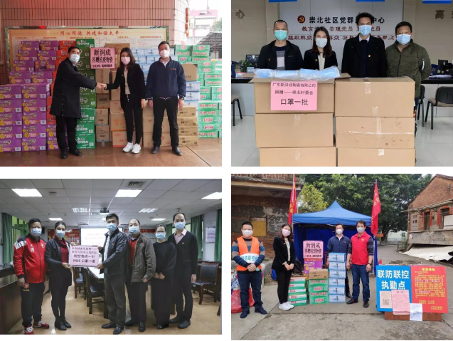 疫情期间,新润成陶瓷向西樵镇太平社区捐赠了一批近3万元爱心物资,并于2月12日送至社区防控一线人员中,用实际行动支持着坚守前线的防控工作人员;在了解到南四医医疗物资告急后,新润成陶瓷主动和医院取得联系,经过紧急的筹备,于2月14日将防护用品第一时间送到了医院,支援一线打赢人民健康保卫战;在了解到西樵镇崇北社区大部分居民无法购买到口罩的困境后,新润成陶瓷通过多方筹措、想方设法、付出巨大的努力从自身仅有的库存口罩中抽调15000只,于2月15日冒着大雨捐赠到崇北社区,以解燃眉之急......