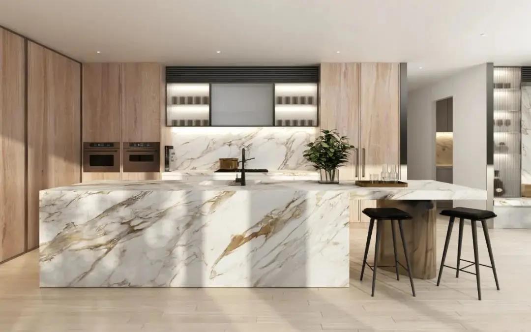 新明珠岩板2020新品【卡拉拉金】灵感来源于意大利阿尔卑斯山脉——卡拉拉地区。作为众多建筑界学者和设计师心中的圣地,名贵卡拉拉金基因传承悠久。今夏,由新明珠岩板以国际视野的设计、工艺全新呈现。