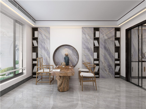 将新中式与黑色结合,空间内展现着平静内敛的气质与高雅古韵的氛围。在装饰时,地面可以铺贴大面积的黑色地砖,与原木色家具搭配,空间呈现出高雅古韵的氛围;搭配灰色或棕色家具,空间呈现沉稳内敛的氛围。