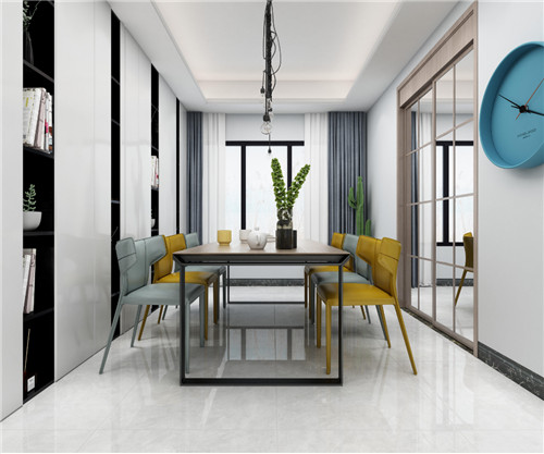 在客厅的运用上,代装修风格的颜色会更多地采用黑、白、灰来显出现代人追求简单的生活方式。拿下面的案例来说,设计师在设计时就已经规划好了家具的摆放,在家具颜色和大小的采用上不会偏离本身的风格,加上一些简单的装饰与瓷砖对应,一个漂亮的客厅就出来了,可千万不要为了追求豪华让家具与装修风格格格不入哦!