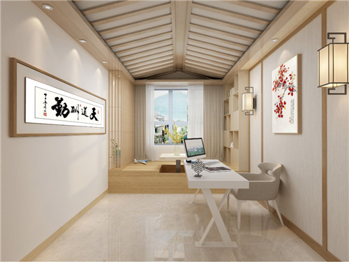 闲时泡一杯茶,坐在窗边,阅读一本纸质书,那也别有一番趣味。下面的案例将整个书房塑造成了一个小木屋,配上一幅画,整个书房的感觉就出来了,漂亮、舒适的房间飘散着文学气息。