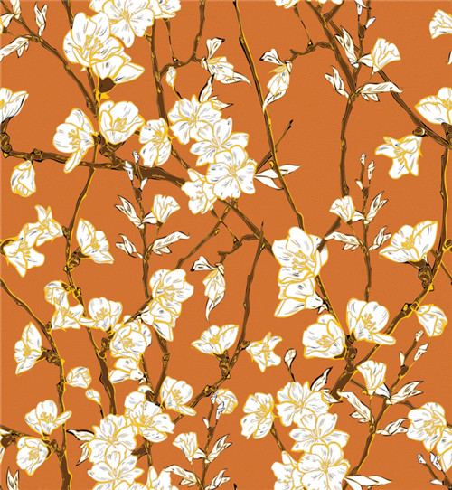 这款桃花满园源自故宫博物院清代藏品碧玉刻诗双插屏中的桃花图案与爱马仕挂画《骑士图》的结合,通过水粉的晕染与油画厚涂技法结合,以描金的方式进行图案点缀,使得颜色、花纹、质感更加清晰、真实。