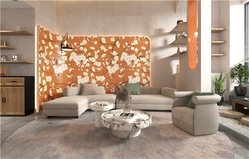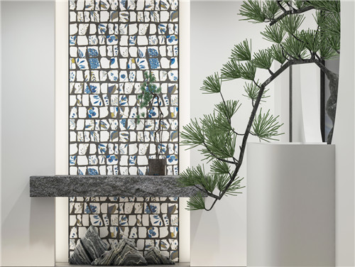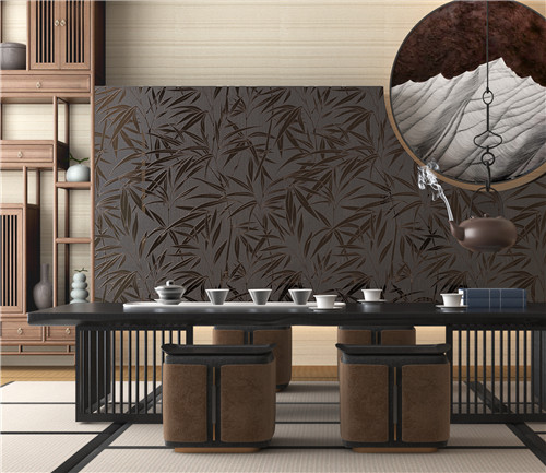 以600*1200mm规格呈现,适用新中式风格的代表、轻奢风格、现代风格,可墙地一体使用,上墙效果更好。