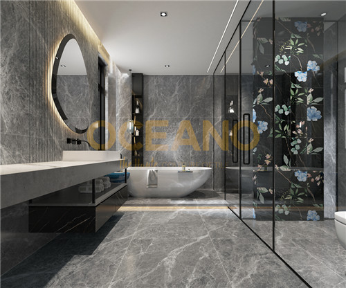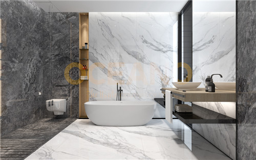 ▲墙地面使用欧神诺2021新品岩板|卡莫·瑭皇系列
