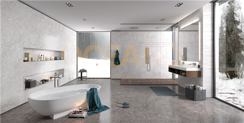 ▲墙地面使用欧神诺2021新品苏格·岩板石系列