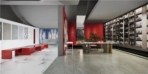 金丝玉玛瓷砖此次参展的展位将以亮眼的酒红色为主色调,象征着品牌是为家居生活带来活力与热情的动力引擎,打破传统的单一直线框架结构,采用柔线造型设计,寓意金丝玉玛在家居应用中的无限可能,打造一个集艺术、自然、与生活的多维融合空间。