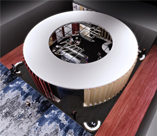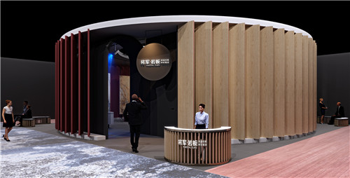 将军岩板2020设计周展位设计理念源于“万物皆可”的概念,展位整体结构形状呈“圆形”,圆是自然哲学,容纳世间万物,以“圆”的造型传递“造物,玩出可能”核心思想,传达岩板产品未来发展可以创造无限可能的核心理念,体现多元化、多模式、多领域全方位的发展将是将军岩板品牌发展的重要方向。展位两侧的多向旋转式造型,犹如一个高速旋转的火轮,寓意着企业在迅速发展的大好态势,展位的文化精神、视频呈现内容、物料展示都将始终贯穿展位的设计理念。