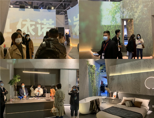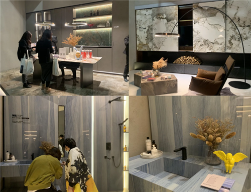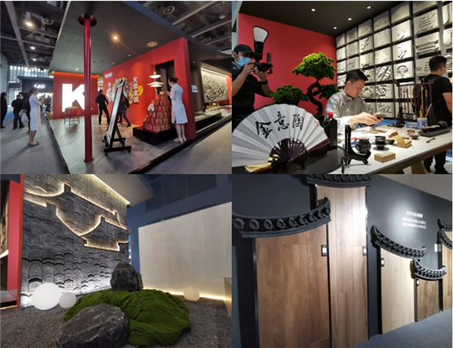 人人尽说江南好,江南神韵尽在KITO展馆。此次广州设计周金意陶继续发扬国风精神,将展馆打造成富有韵味的江南水乡。其展出的产品主要围绕着金意陶集团的“一核两翼”——瓷砖、岩板、新材。设计师将不同的材料进行组装复合,碰撞出不一样的呈现效果。金意陶瓷砖战略部部长郑岩表示:参展广州设计周并不是要把金意陶推给设计师,而是让设计师记住并选择金意陶,相信我们所做的努力都在往这个方向进步。