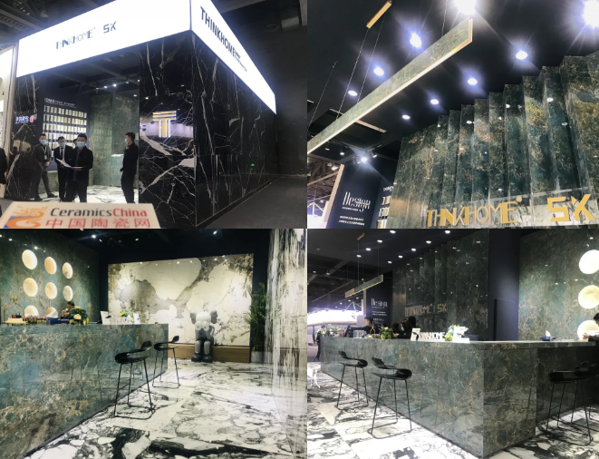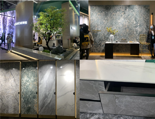 欧神诺陶瓷此次以“欧神诺岩板定制馆”参展,超前的「岩板家居定制套餐Ver.2.0」,从地板到天花板,让观展商全方位体验岩板定制的可能性。除了展出岩板成品家具外,欧神诺还带来了欧神诺岩板的最顶端产品——“瑭皇”,独特的质感、奢华的花色,博尽眼球。