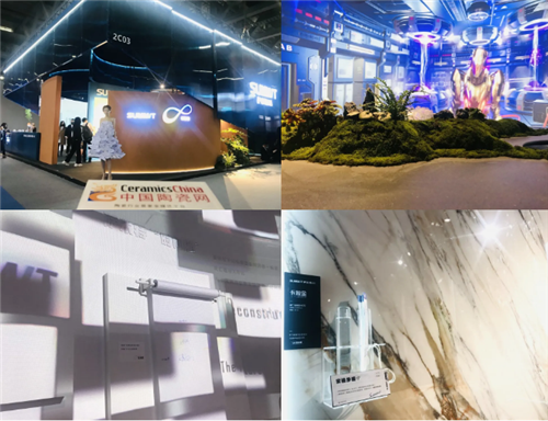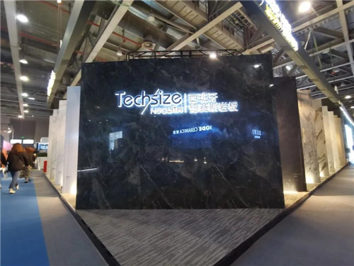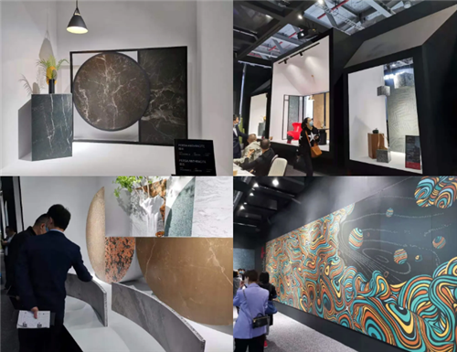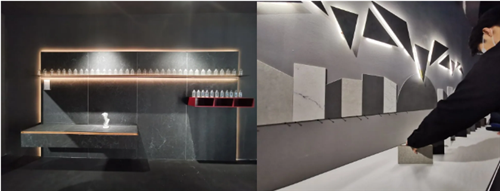 不难看出,今年很多瓷砖品牌展位都一改过去多品类产品的展示风格。如燊科瓷砖此次展位上只有四款岩板新品,一款是用作水吧台的岩板,两款是铺地上墙(其中一款是当其他品牌推长型尺寸产品时,他们却推出的正方形),再有一款是靠背景墙的坐凳。建筑室内设计师材料库需要丰富的材料,但更需要可以带来灵感的能代表趋势方向的一两款产品,只要足够引人注目,又何需过多?而一目了然,简约大气,就是为了怕眼花缭乱的设计师提供明确的产品选择。