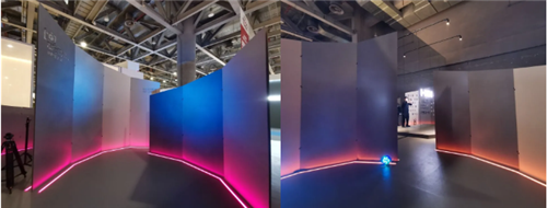 HBI整个展位外形犹如一个不规则的漩涡型迷宫,结构由HBI的超薄岩板组成。通过巧妙运用灯光和镜面,让整个空间的光影形成流动和链接。HBI特地打造的情绪摄影室,吸引了大批的观众打卡拍照。某观展设计师表示:朱柏仰老师的设计,将空间、材料、情绪三者做到最好的结合。