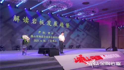 首先由尹虹博士为大家介绍全球岩板发展现状,深度解读岩板的未来发展趋势。并表示峨眉山金陶可谓是岩板新赛道抢跑,实现弯道超车的典范。