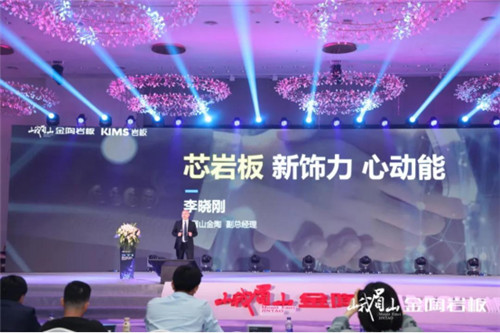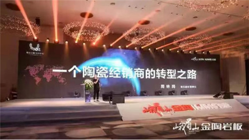 峨眉山金陶副总经理李晓刚带来《战略主题演讲》,现场解读发展战略,未来企业将以新思维进行产品的创新,以新产品实现营销的发展,不断进行营销升维和市场升维,进行全方位的品牌进阶,争做岩板行业的华为。