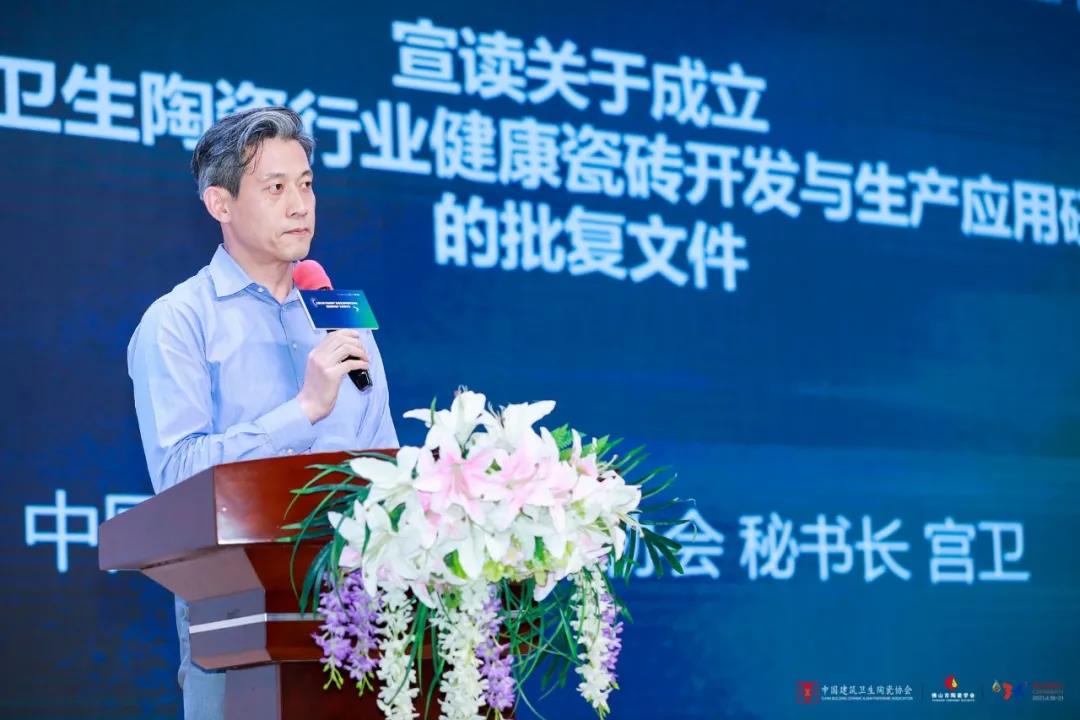 中国建筑卫生陶瓷协会秘书长宫卫宣读了关于成立“中国建筑卫生陶瓷行业健康瓷砖开发与生产应用研究中心”的批复文件。