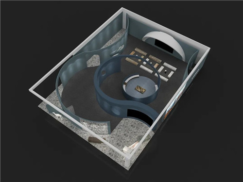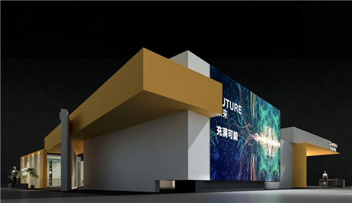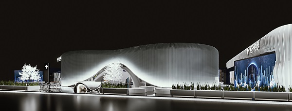 该展馆的外立面形态是是极具张力与视觉冲击力的翅膀,色彩大面积运用富有张力的白色搭配炫彩半透的红色有机玻璃,内部则以“时空隧道”为纽带,穿梭于现代与未来、自然与古朴。另外,整个展馆设计还融入了“星、光、影”的设计手法,让情感的体验上更加的立体与“发散”。