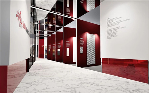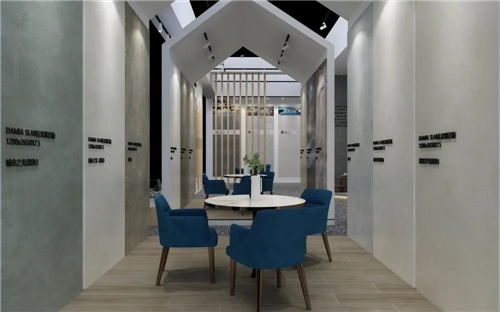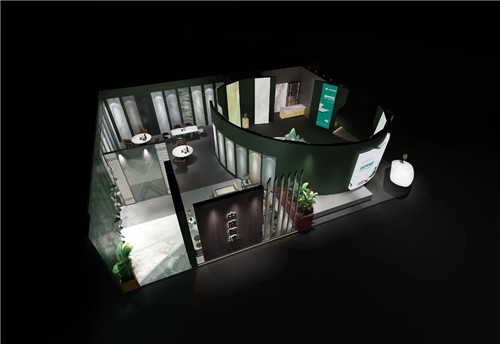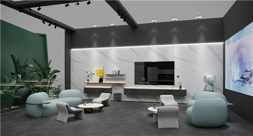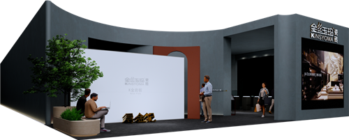 亮点:作为峨眉山金陶瓷业旗下的高端岩板品牌,KIMS岩板的展位以“国际化、年轻化、时尚化”为设计主旨,大胆摒弃过去过于“文雅”的表达,更多地运用意大利现代建筑的设计手法。以简约而极具张力的线条与立体构成形态,充分地表达金陶对未来的憧憬与激情,融入“律动”的设计语言,让整个形象更富有现代时尚的节奏感与体验感。