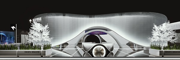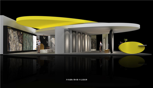 亮点:此次展会,升华建陶以“星空启航”为展馆外形核心,设计团队从星辰大海和恒星轨迹中汲取灵感,色调结合了2021年最新国际流行用色,大胆创新地提取了极致灰和靓丽黄。造型以几何椭圆和简约纹理为基础,摄取太空船船体构造的技法,营造出充满未来感、空间舒适、空间错落有致的太空概念馆。