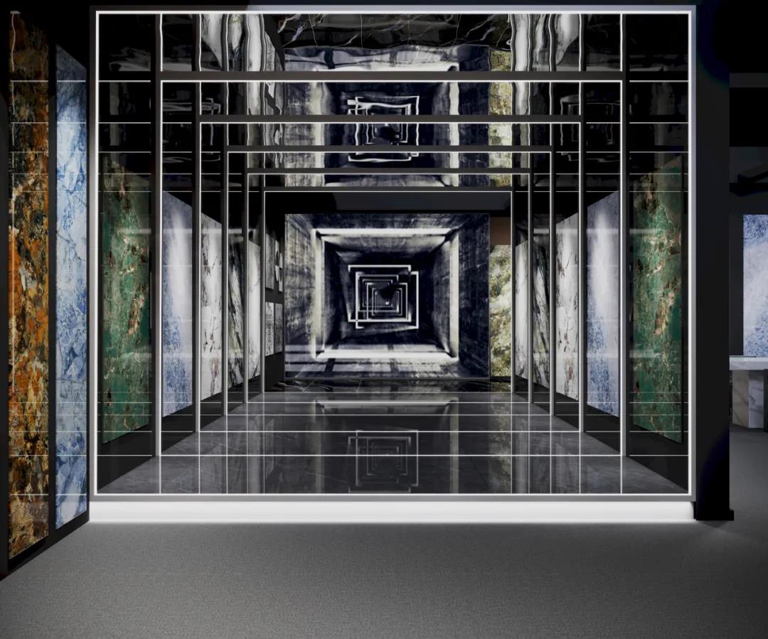 亮点:此次展会,强辉精工瓷砖在展馆设计中打破常规,大胆融合具有科技感的镭射元素,打造出“晶曜主义”主题馆。作为科技下的视觉产物,展馆整体呈现出一种梦幻且神秘的氛围,宛若异次元空间,馆内还设有集时尚与潮流于一身的网红打卡点“钻石隧道”,在镜面与镜面之间的多重反射下,空中悬浮着五彩的光影,带来360°的沉浸式体验。