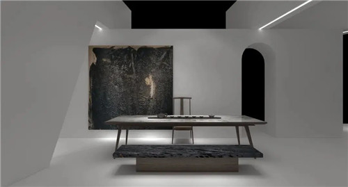 升华建陶岩板的“自然之道”空间展示馆以简朴、纯粹、轻盈的材质,搭配净、简、素的配色,赋予空间宁静的自然氛围。大量线条的应用使得空间错落有致,构件、材质、空间的多意表达展示出时尚与自然的复杂、交互关系,让空间、自然与人的行为融汇在一起,满足观众对自然和诗意生活的向往。