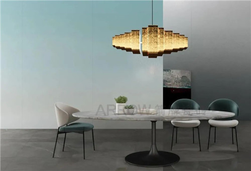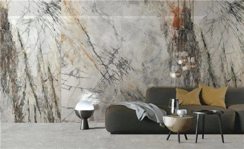 据悉,雪狼岩板将在展会上推出全新的产品星钻石·结晶釉系列产品。该系列产品采用独特的干粒施法结合最新的星钻结晶釉生产工艺,通过材料学与光学的技术结合,利用不同密度下对光的连续反射、折射而形成晶体闪光效果,通透感更强。在光的照射下,岩板釉面的透明结晶体产生点、线、面切割,使有限的空间得到无限的视觉延伸。