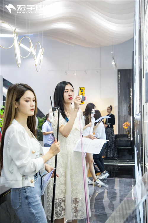 展会现场,宏宇陶瓷以绝美设计吸引了各大实力主播达人前来逛展打卡,引爆流量关注。云逛展、云体验、云互动”,通过主播达人身临其境的线上分享,将这份来自宏宇的视界盛景传递给全球粉丝。