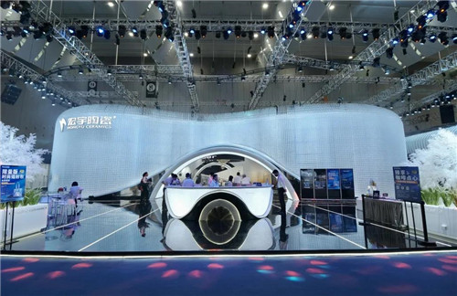 视界盛放!2021潭洲展,宏宇陶瓷“空中巨眼”傲立群雄!