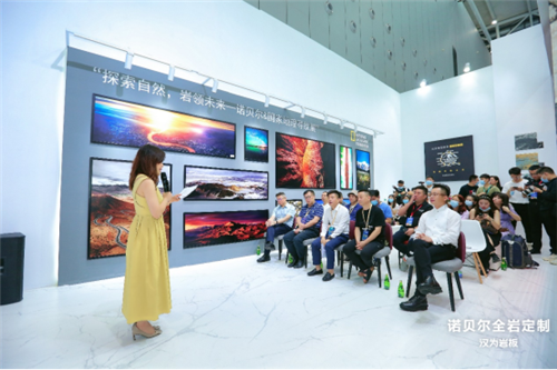 作为中国岩板行业的先行者,此次诺贝尔通过将自然风貌与产品肌理相结合,以「探索自然,岩领未来」为主题,不断拓展产品边界。同时结合奇妙岩洞展厅、沙龙论坛、现场展位分享的「展示+对话」多维形式,全方位引领当代美好人居新风尚。