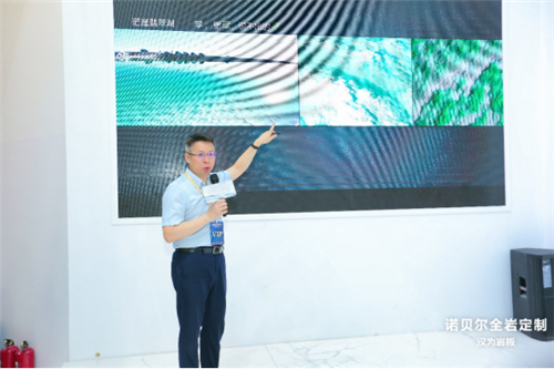 沙龙伊始,诺贝尔陶瓷集团总裁周国跃先生上台致辞表示:今年,诺贝尔从自然人居理念出发,与国家地理携手“寻纹记”活动,研发推出“探索自然系列”新品,通过品类创新、技术创新、纹理创新,让岩板家居应用变得更多样灵活。对产品精细的打磨与场景应用的考究,正是诺贝尔所追求的“全岩定制”品牌主张,即通过对产品交付方式与应用及服务体系进行升级迭代,从而打造全岩定制时代人居生活新格局。