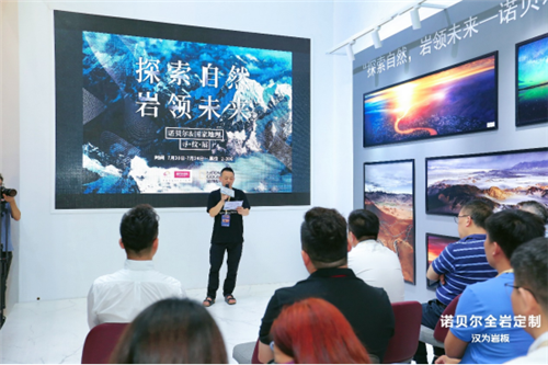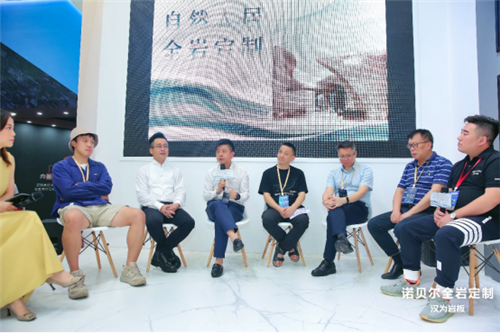 在之后的「自然人居,岩领未来」沙龙对话中,与会嘉宾们一起探讨在新岩板风潮下自然人居新命题。中国建筑卫生陶瓷协会高级顾问,佛山市陶瓷行业协会秘书长,华南理工大学教授尹虹先生强调近些年来随着岩板行业迎来火爆的同时也存在着危机,对终端产品的重视度不高导致服务定制跟不上,岩板行业的创新与应用需提上议程。湛江设计力量协会会长吴文粒先生则从设计师角度阐述了岩板从铺贴产品、应用产品再到功能产品带来的无限想象,诺贝尔在产品研发的努力,让我们不再是自然的搬运工。国家地理特邀摄影师张夏青先生则从摄影的角度诠释了见证图像到产品落地后的欣喜心路历程。最后,展览主创设计师陈万勇先生以展厅设计收尾,讲述了全岩定制下自然人居空间的美学灵感。