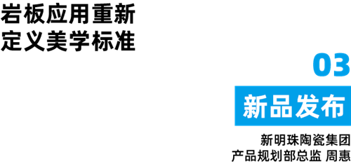 在2021新品发布环节,新明珠陶瓷集团产品规划部总监周惠上台讲话。周总指出,岩板大热的本质是市场的需求:蓬勃发展的市场对美学、产品性能的高要求,推动了对新型高性能材料、连续表面和美学设计的探索。