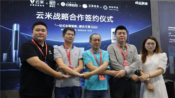 7月20日上午,河北领标科技发展有限公司董事长薛总与云米创始人CEO陈总,共同签署了战略合作协议。在全面打造数字经济新优势的背景下,领标科技与云米全屋互联网家电的战略合作意义非凡。合作的顺利达成意味着把健康环保零甲醛的新材料用科技赋能的形式,带入千家万户,是岩板在家居智能物联网行业的全新探索,开创了岩板行业的全新生态系统。