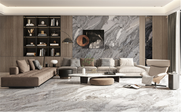 因此,想要实现密缝连纹效果,对瓷砖材质本身在纹理、规格、性能等方面的要求是极高的,并不是市面上所有瓷砖都能做成密缝连纹铺贴。瓷砖的平整度差、吸水率值以及热膨胀系数都是有严格数据范围的,只有做到高低一致、尺寸一致、吸水受热不起拱,才能达到密缝连纹效果,也正是这些苛刻的产品指数在给密缝连纹铺贴保驾护航,最终得以实现瓷砖天然纹理一体化的自然美,满足用户在家居设计及装修中的各种美感和实用性上的需求。
