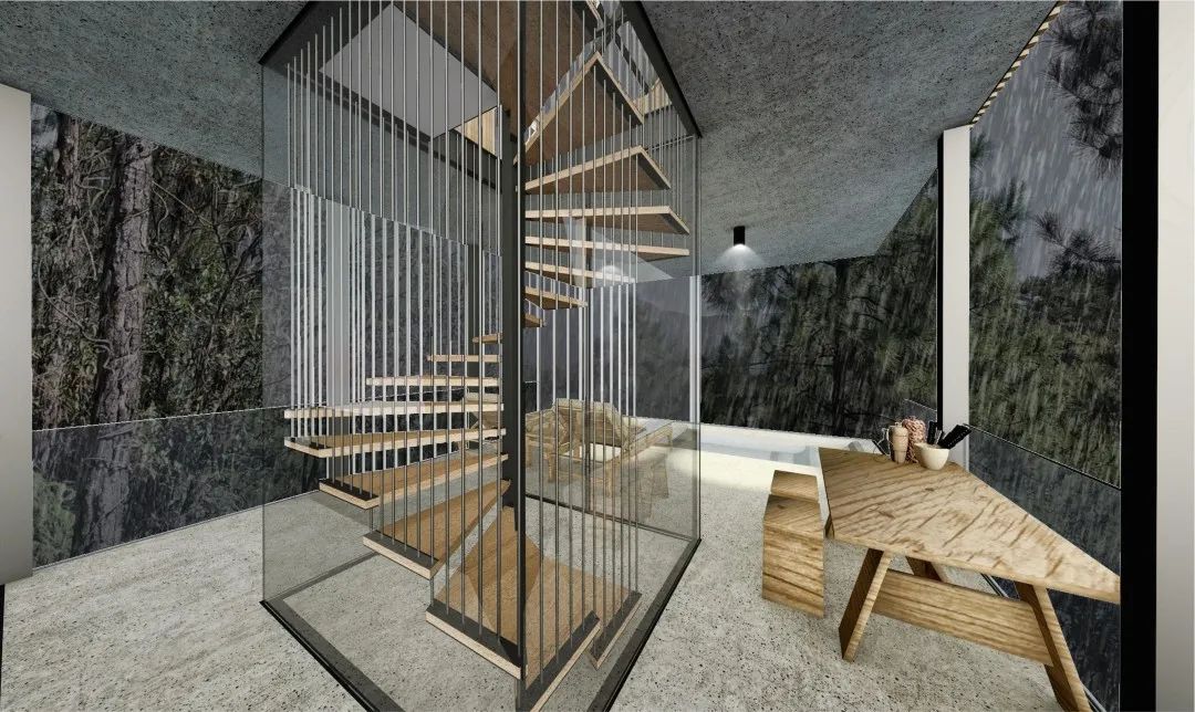 这个挺有意思的,一个小体量的东西比较单纯,怎么解决它和自然的结合,以及材料的选择。