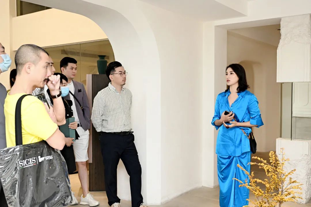 来到岭众联合-田艾灵设计机构,创始人田艾灵女士向区域先锋们介绍了公司的设计风格及桓墅名称的由来,并带领着一行人进行参观。