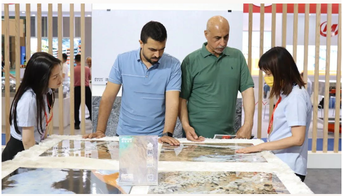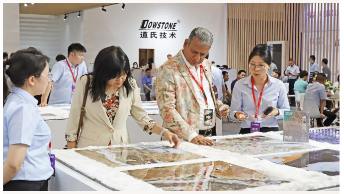 ▲ 2023佛山潭洲陶瓷装备与材料展,道氏技术全抛堆雕产品吸引了内外客商广泛关注