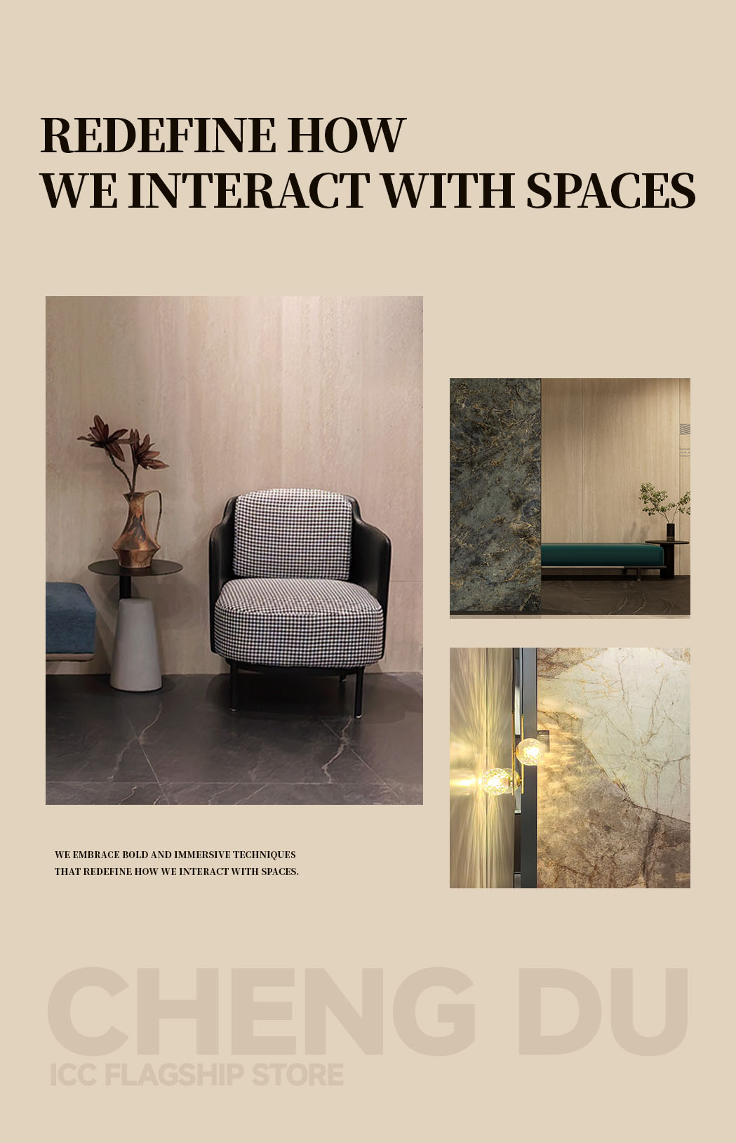 作为国际高端瓷砖岩板品牌、进口瓷砖岩板品牌、北美高端瓷砖岩板品牌、原创设计瓷砖岩板品牌,ICC瓷砖岩板始终致力于将全球设计趋势与当代美学相结合。ICC瓷砖岩板成都展厅游园式全新呈现,标志着品牌从"产品供应商"向"空间美学策展者"的进阶。