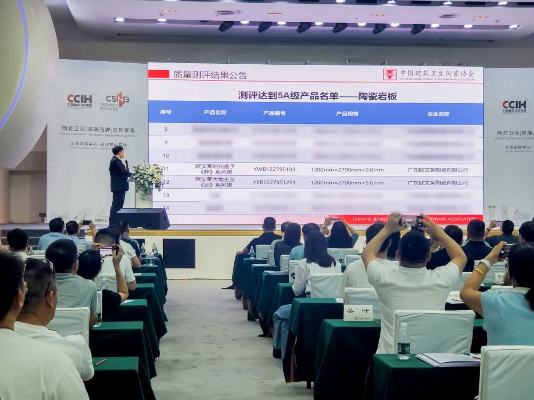 会上,质量测评结果公告,欧文莱通过首批“新国标”AAAAA级检测,近三代符号产品均“上榜”!