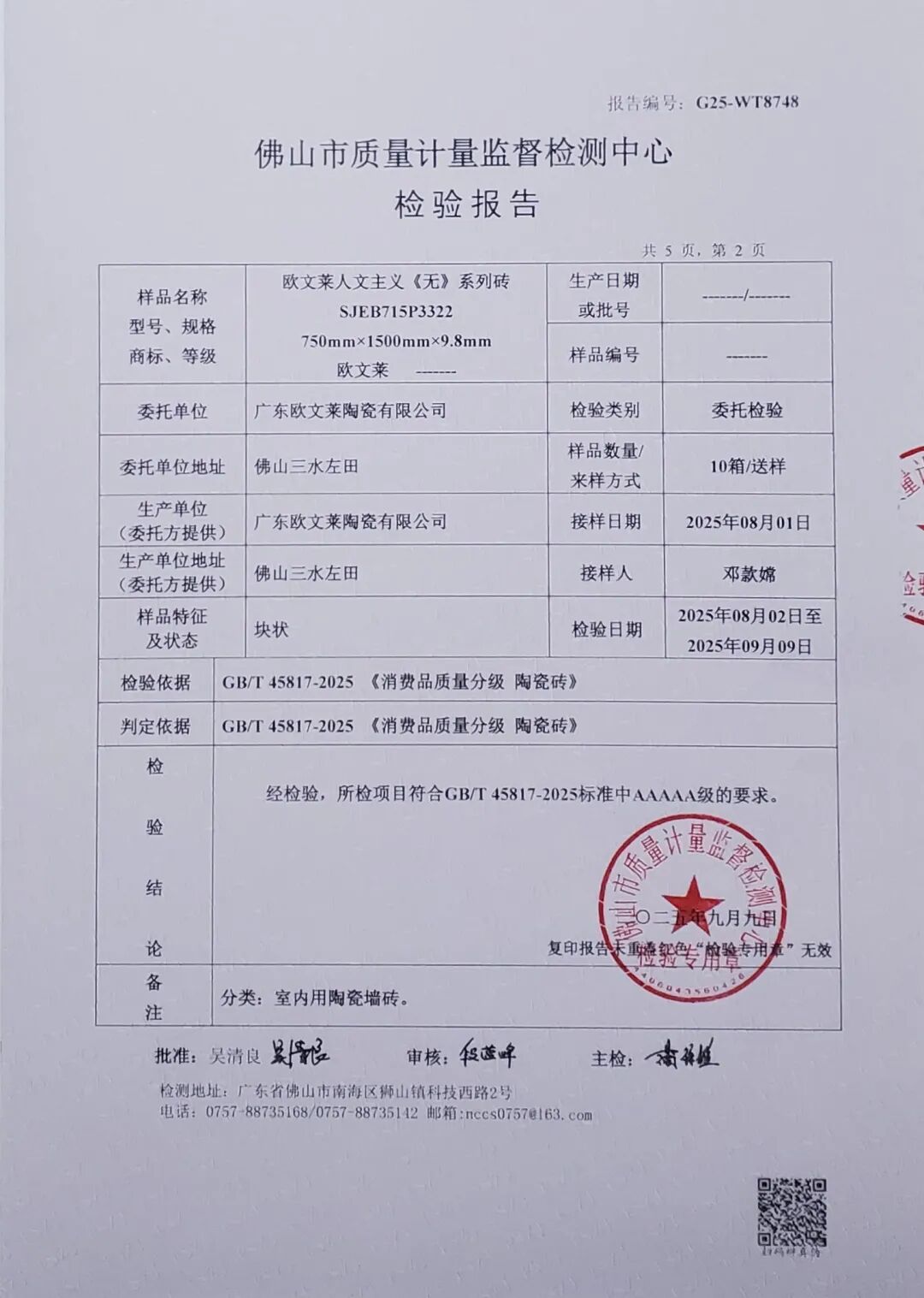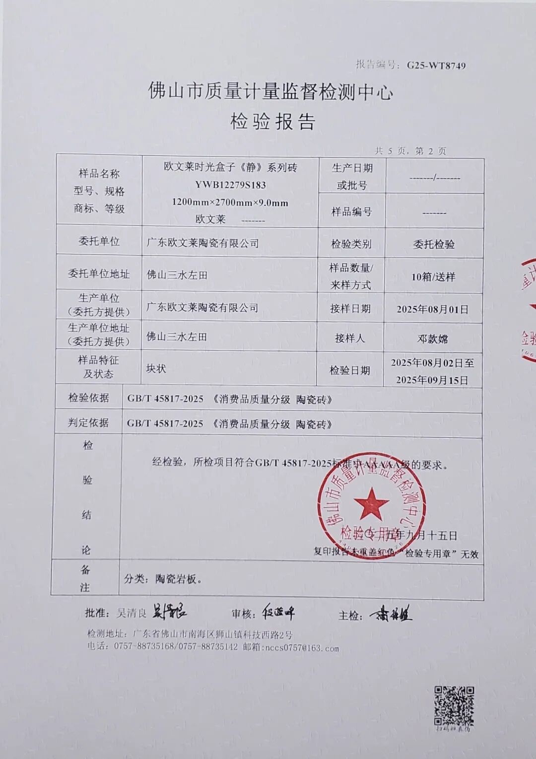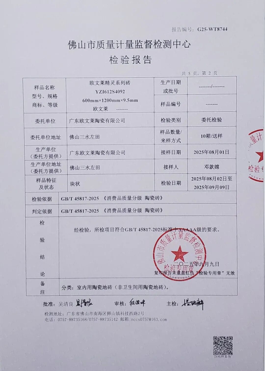 10月17日下午“2025建筑陶瓷新质生产力发展大会”佛山中国陶瓷产业总部基地隆重召开会议主要内容为GB/T 45817-2025《消费品质量分级 陶瓷砖》标准解读、依据GB/T 45817-2025《消费品质量分级 陶瓷砖》标准的首批质量测评结果公布及数据分析,以及建筑陶瓷新质生产力发展主题演讲。