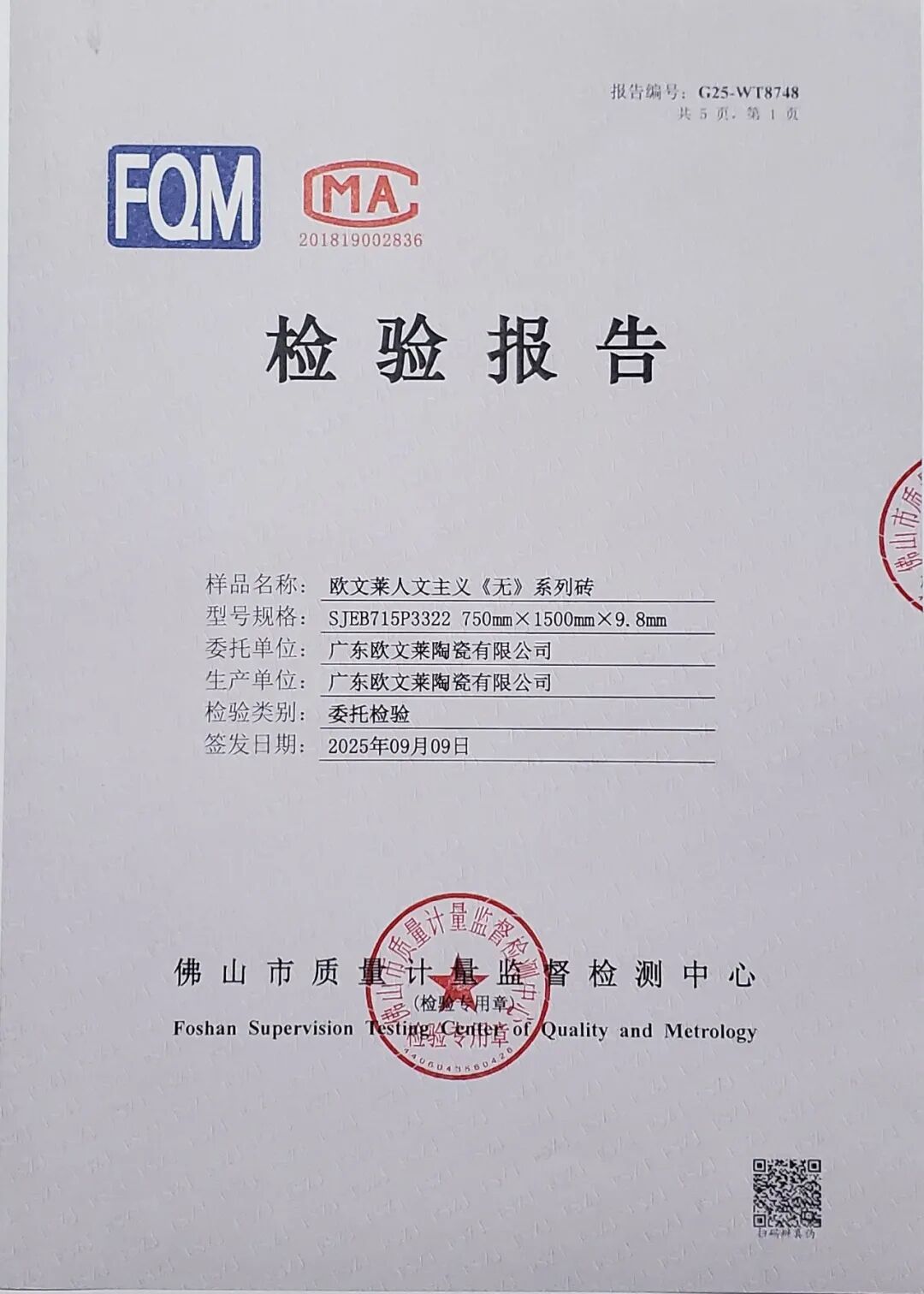 作为素色瓷砖品类的开创者,欧文莱公司在业内的综合实力获得国家级高度认可,是《消费品质量分级陶瓷砖》国家标准的起草单位之一。标准发布后,欧文莱产品各项性能指标达到标准中最高要求,通过首批“新国标”AAAAA级检测,近三代符号产品均“上榜”,彰显品牌高质量发展新高度。
