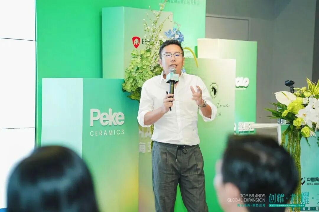 他分享了海外客户的痛点:采购的中国陶瓷产品安装后与展厅效果差异很大。他建议,企业出海需重视产品与设计捆绑,以“产品+专属设计”的整体方案替代单一产品推销。