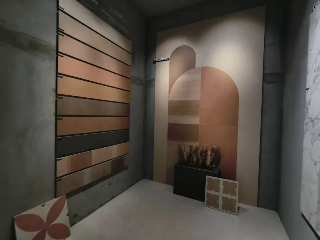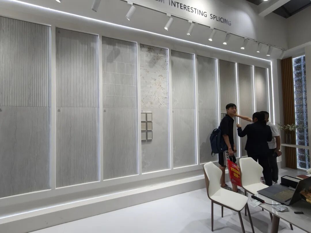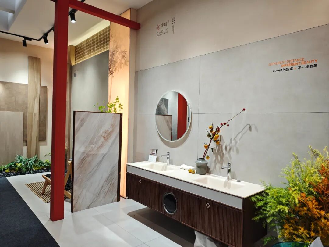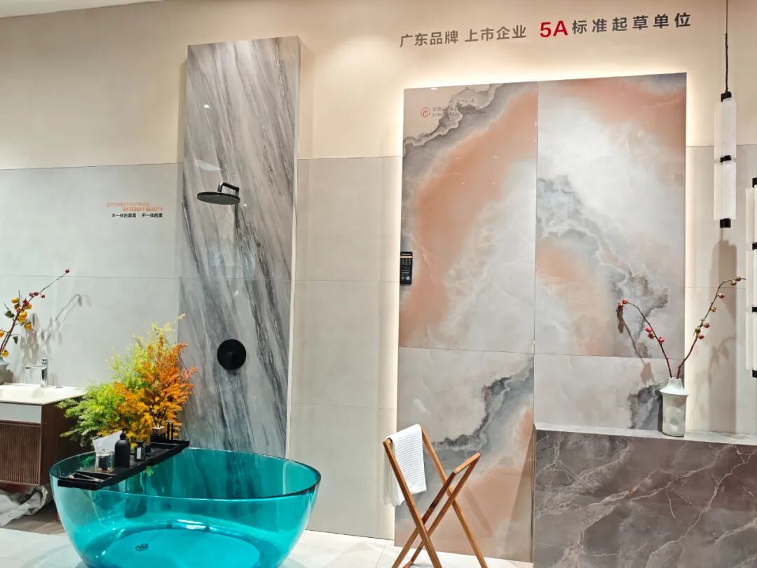 在展位核心区,荔枝面全通体、榫卯结构石英砖、庭院砖、老石板系列集体亮相,针对不同空间需求。