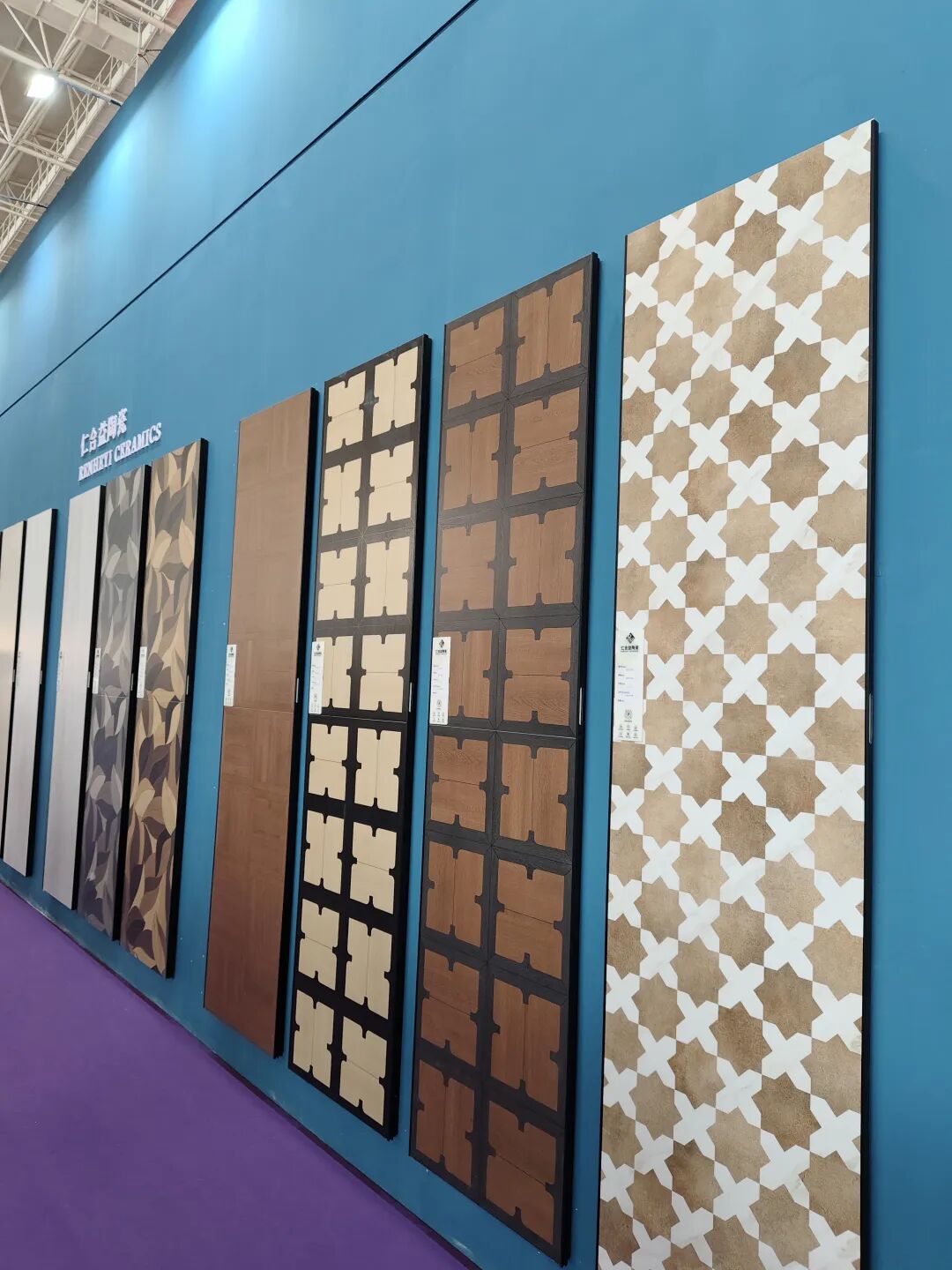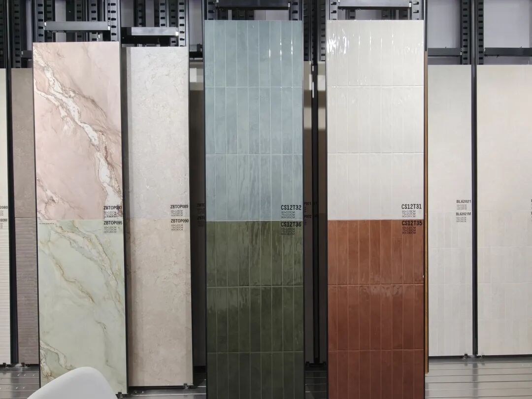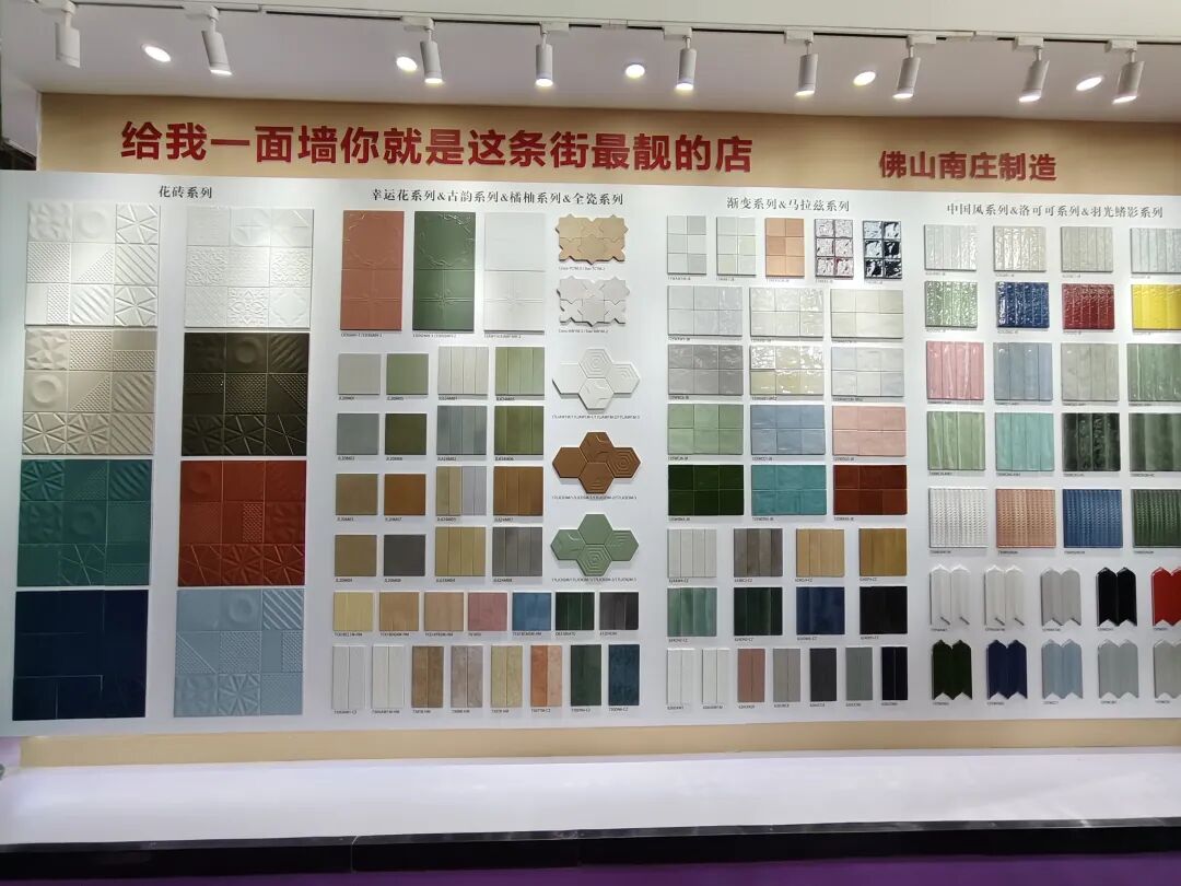 正之联展示了花砖系列、幸运花系列、古韵系列、渐变系列、马拉兹系列、纯色系列、洞石系列等多种款式的瓷片和马赛克瓷砖等,涵盖多种规格及3D凹凸面、电镀曲边等工艺的产品,从50×200mm迷你砖到900×1800mm大板,品类十分丰富且具有特色。