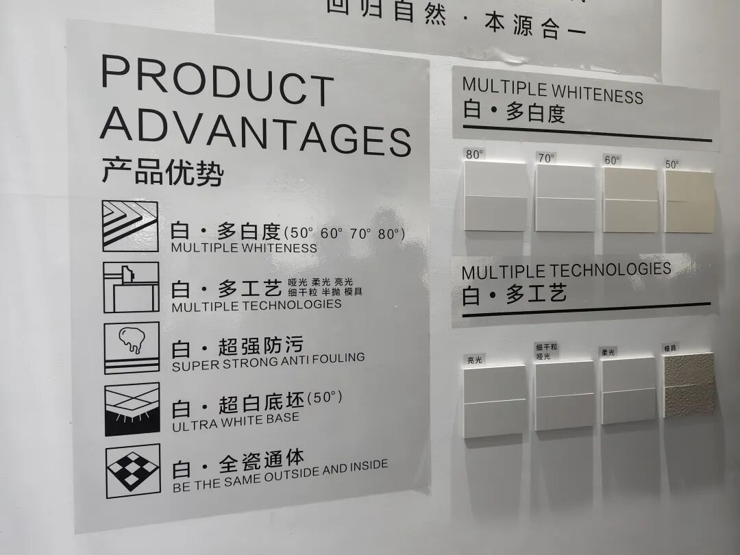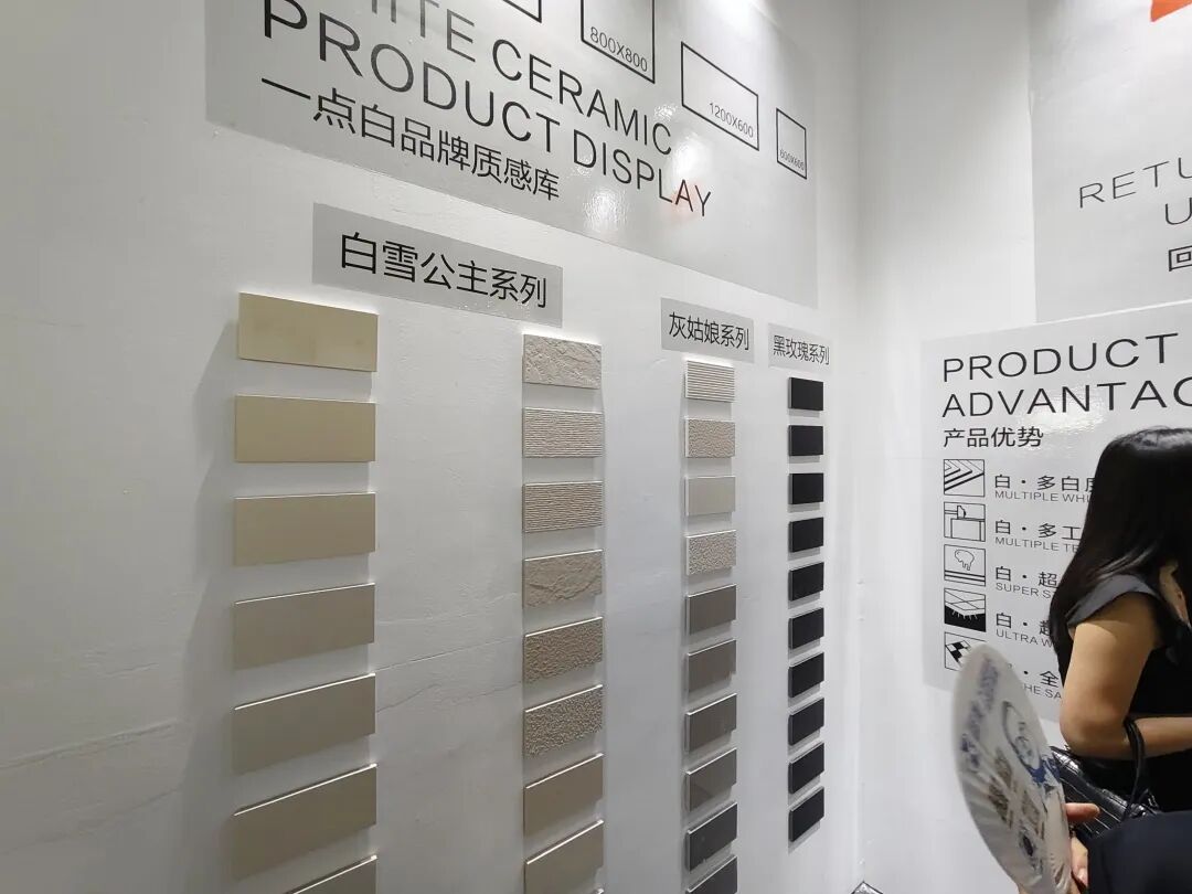一点白带来了白雪公主·60°奶油白、白雪公主·80°极品白等系列主打产品,该系列产品亮点是全瓷通体+超白底胚,规格齐全,涵盖600到1800规格产品。