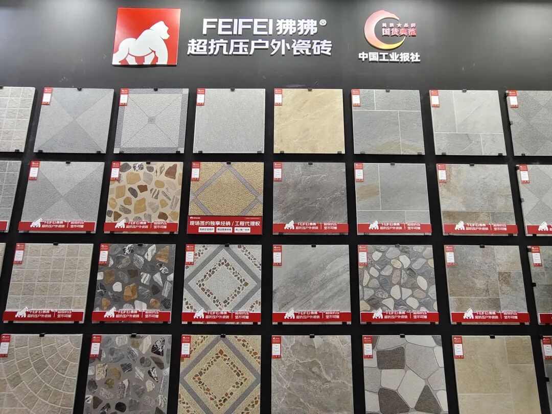 福马携旗下品牌狒狒超抗压庭院瓷砖重点带来了多款地铺石拼花系列和星河系列的多款瓷砖。
