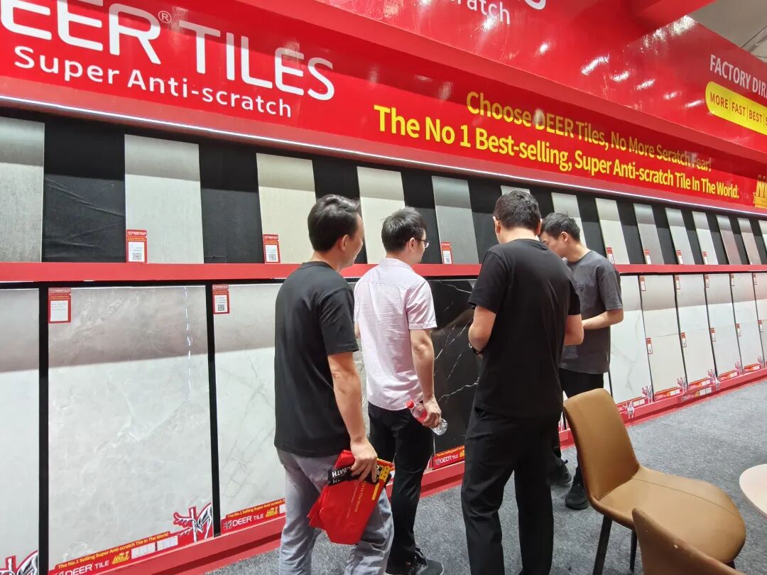 全球超耐磨瓷砖销量第一的大角鹿,是中国瓷砖出海的探索者和成功实践者。其国际展馆主要展示了超耐磨、超抗污等超强性能产品,其中的洞石等产品为子母配套,覆盖600×1200㎜、300×600㎜、600×600㎜多个尺寸,受到海外客商的一致好评。