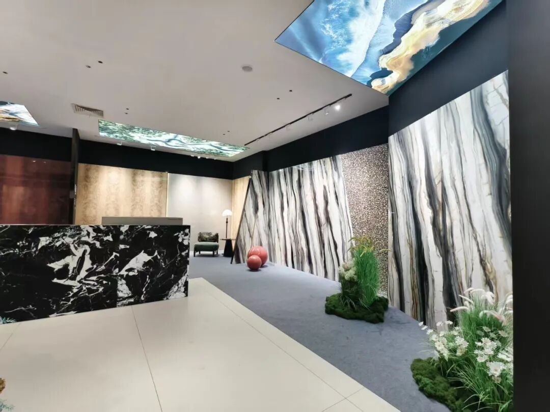 此次展会,嘉尼亚带来了贝桑松之心、塞尚、顶级芬迪白、范思哲黑、罗马洞石等创新型拳头产品。