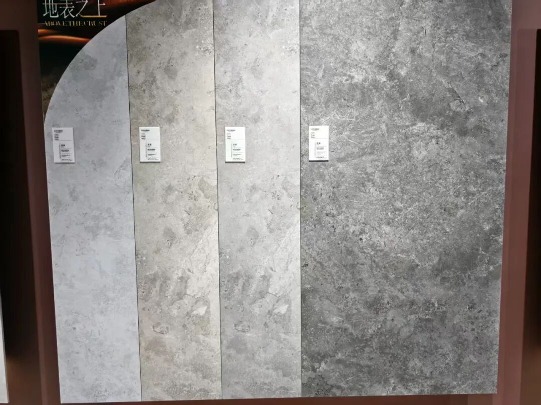 此次展会,卡布奇诺以“地表之上”为主题发布新品,涵盖砂岩、理石、水泥、木纹等自然元素材质,一石多色彩、多纹理、多质感选择,规格有750x1500、1800x800、2000x1000、1200x600、2700x900mm等。